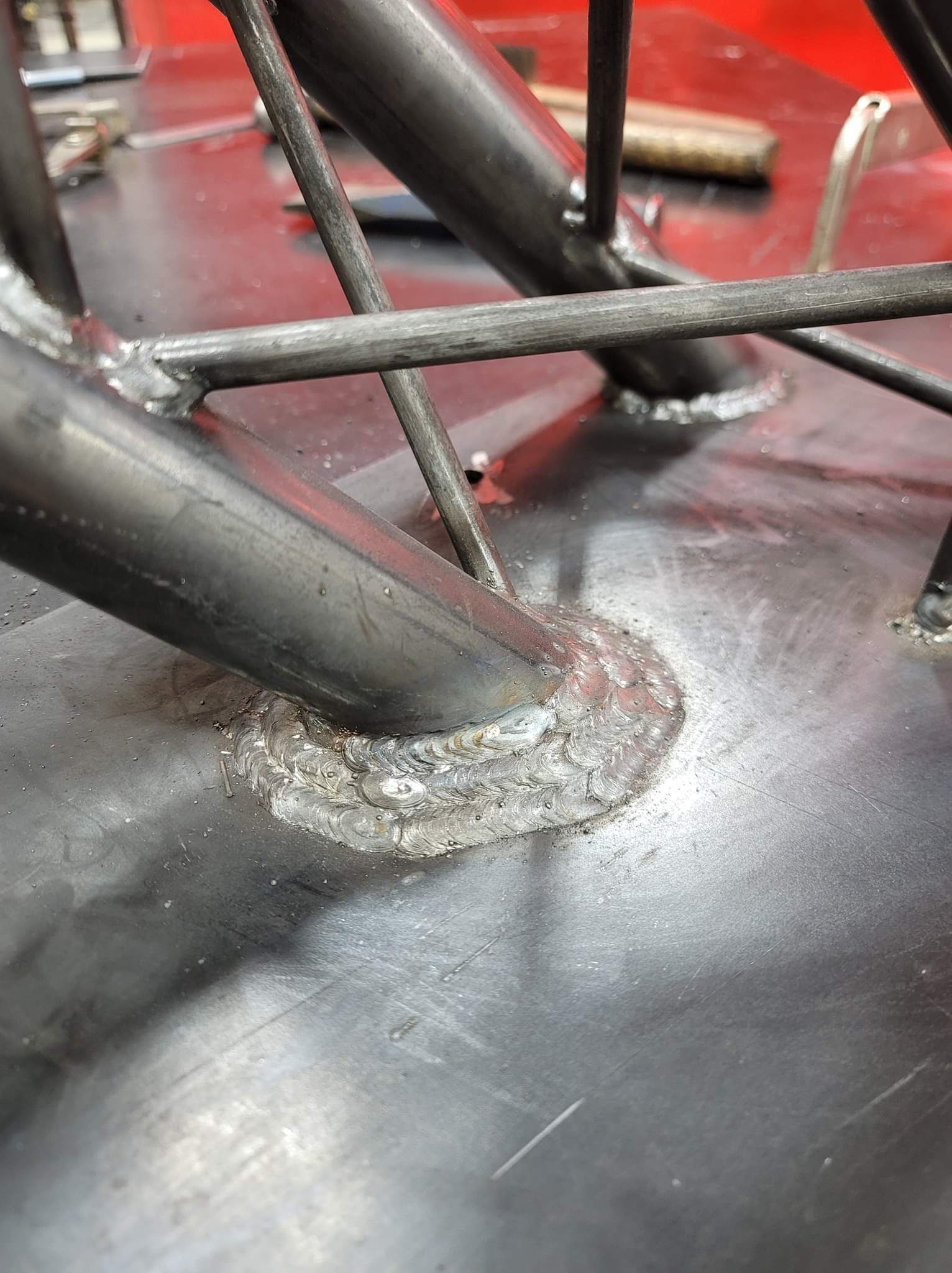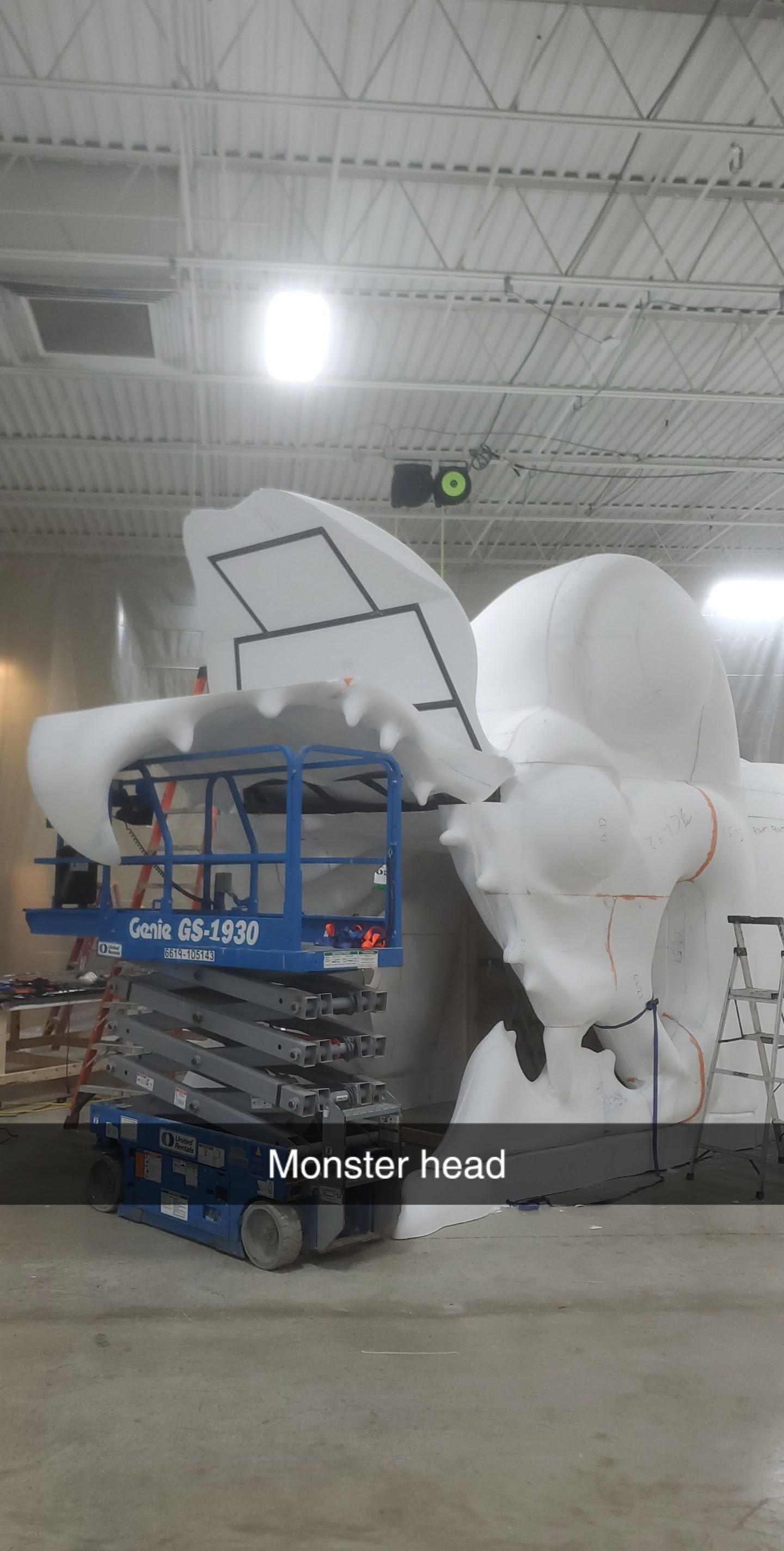 Utilized 2×2” square tubing for the frame, serving as a base for a foam monster head.
