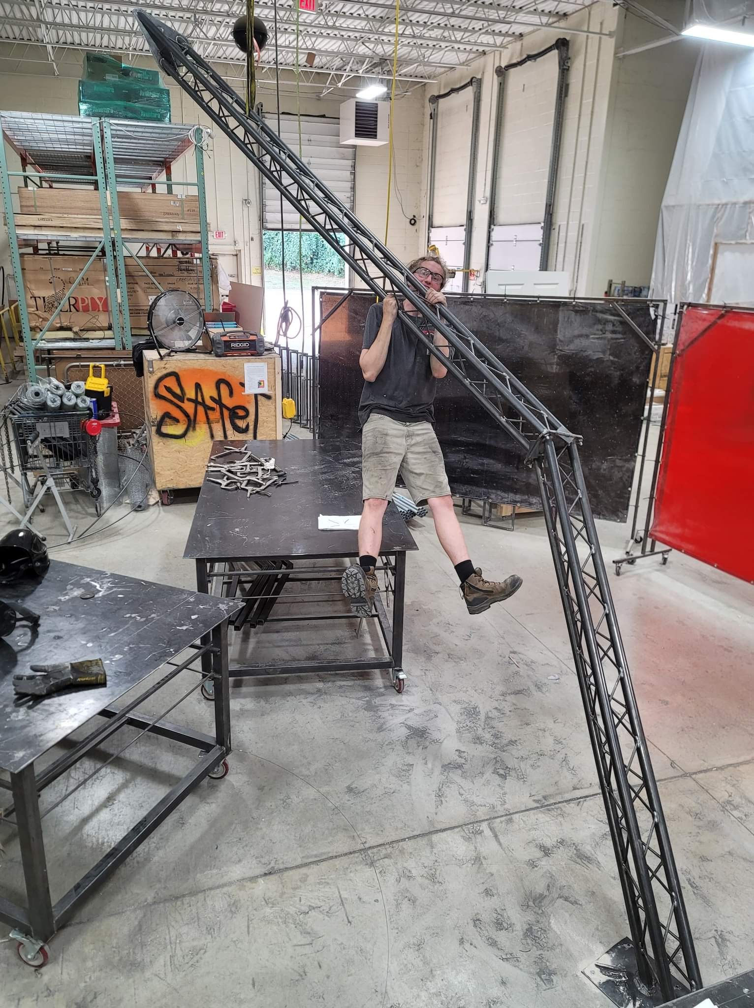 Constructed two pieces of truss that were bolted together to create the arm of the monster.